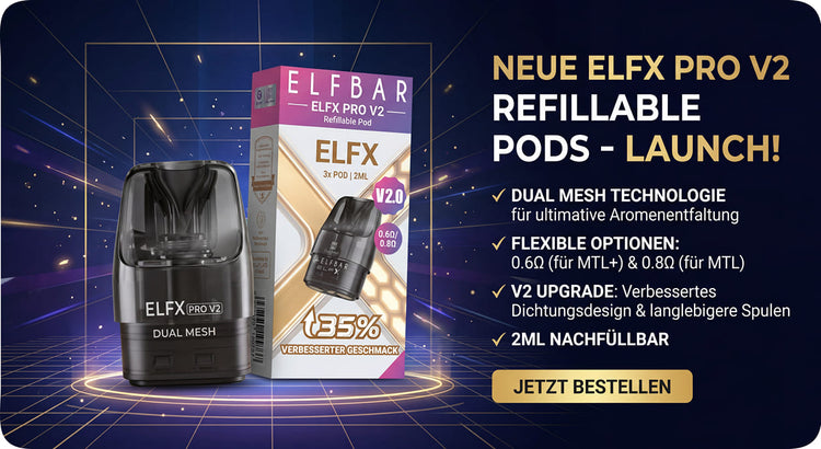 ELFBAR ELFX MEGA Refillable Pod – 5 ml Nachfüllbar, dicht und auf Performance ausgelegt: Die ELFX MEGA Refillable Pods kombinieren Dual‑Mesh‑Technologie mit stabilem Zugverhalten für MTL bis RDL – passend zur ELFX MEGA. Wichtig: 1 Produkt – 2 Varianten Du wählst beim Kauf einfach...